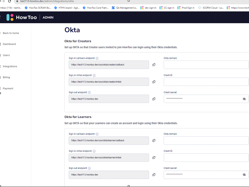 Note: You will need to create two new app integrations. One for Learners and one for Creator, Admin and Primary admin user types.