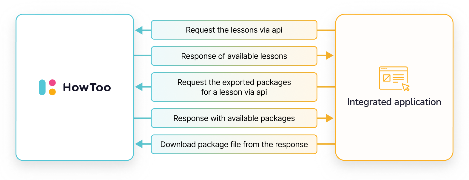 The integrated application can download the exported package or retrieve the shareable link for a HowToo lesson by calling the APIs.