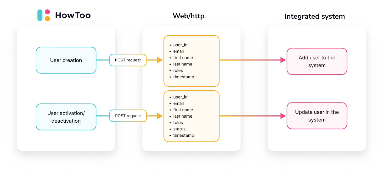 By listening to the user management webhook, external systems can stay up-to-date on changes to user information in Howtoo Academy. This information can be used to keep external systems in sync with Howtoo Academy, or to trigger automated actions based on user events.